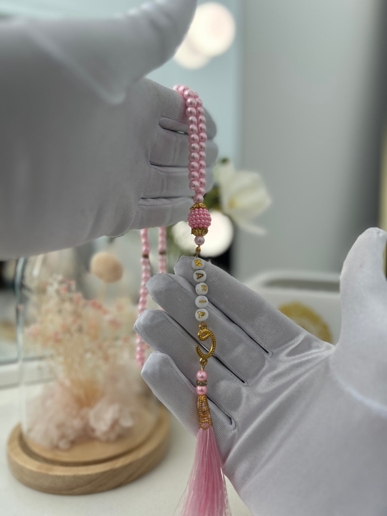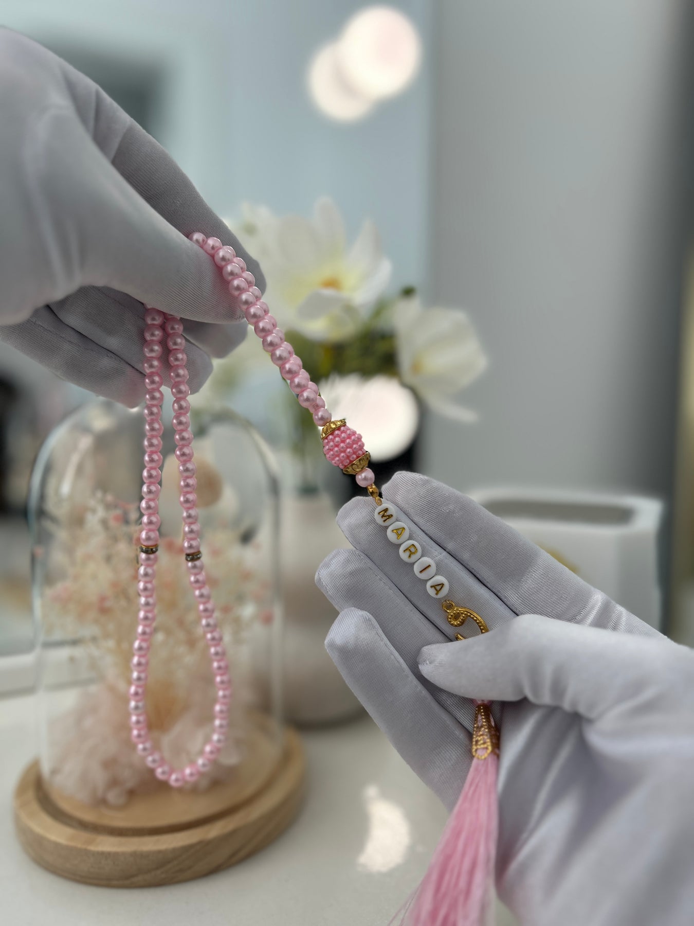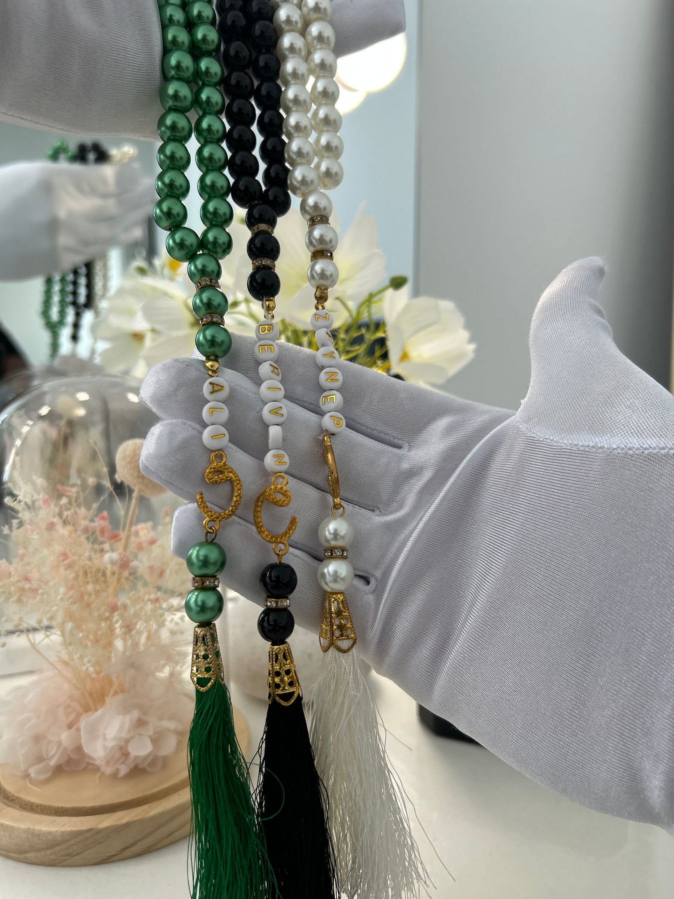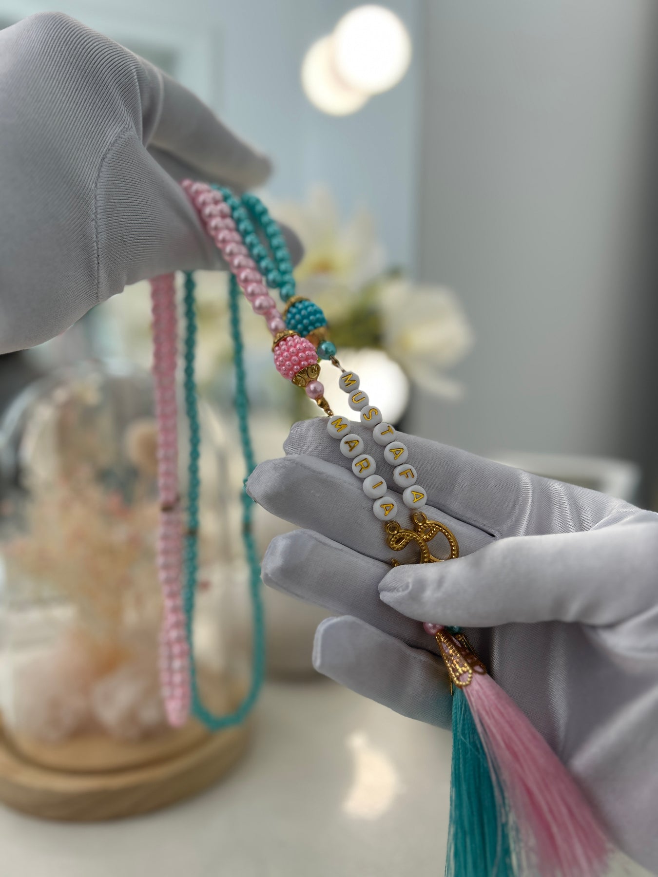 Each bead is strung with care and love, serving as a daily reminder of dhikr and spiritual mindfulness. With your name delicately integrated, this Tasbih becomes a powerful symbol of identity, faith, and remembrance of Allah (ﷻ).